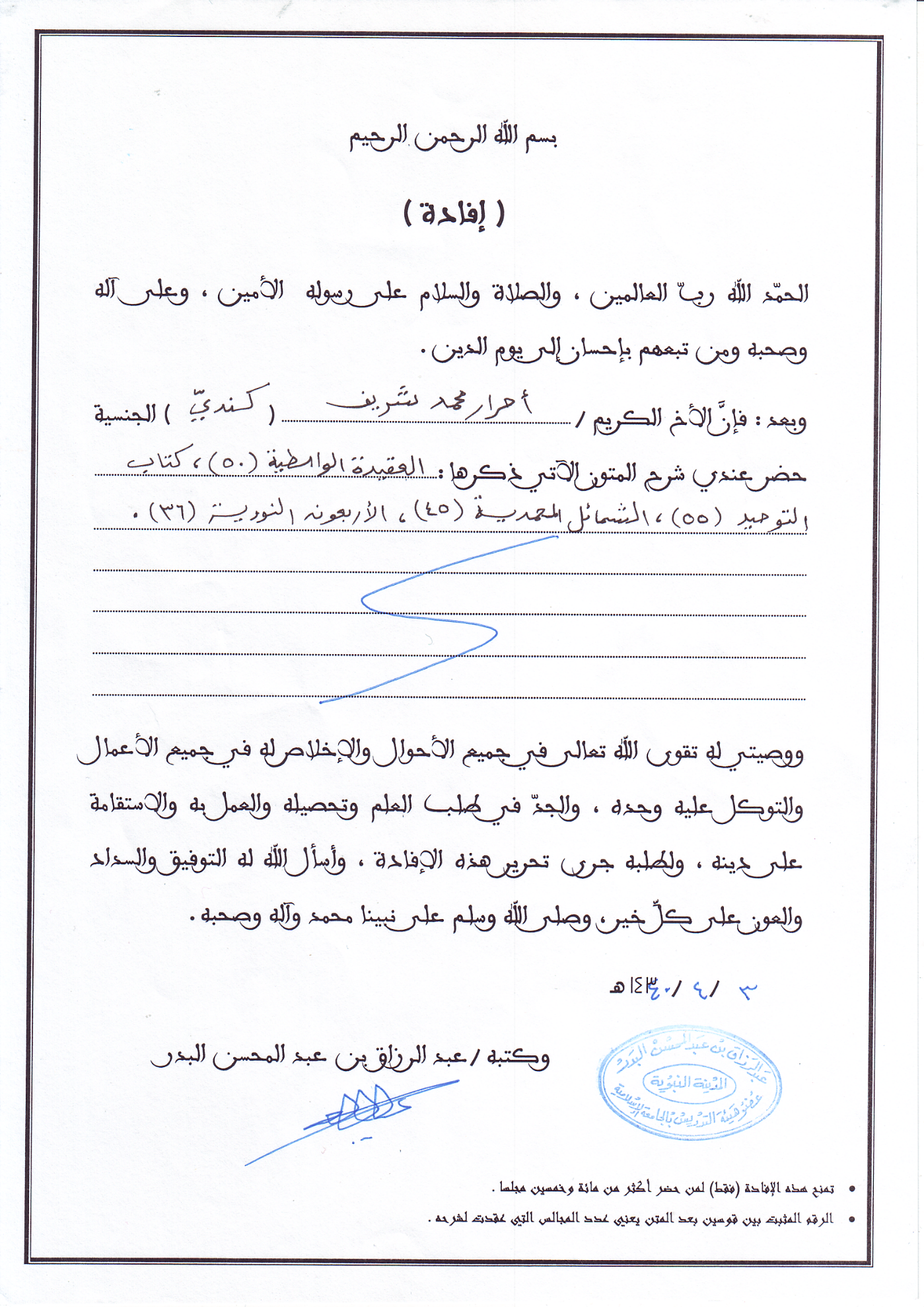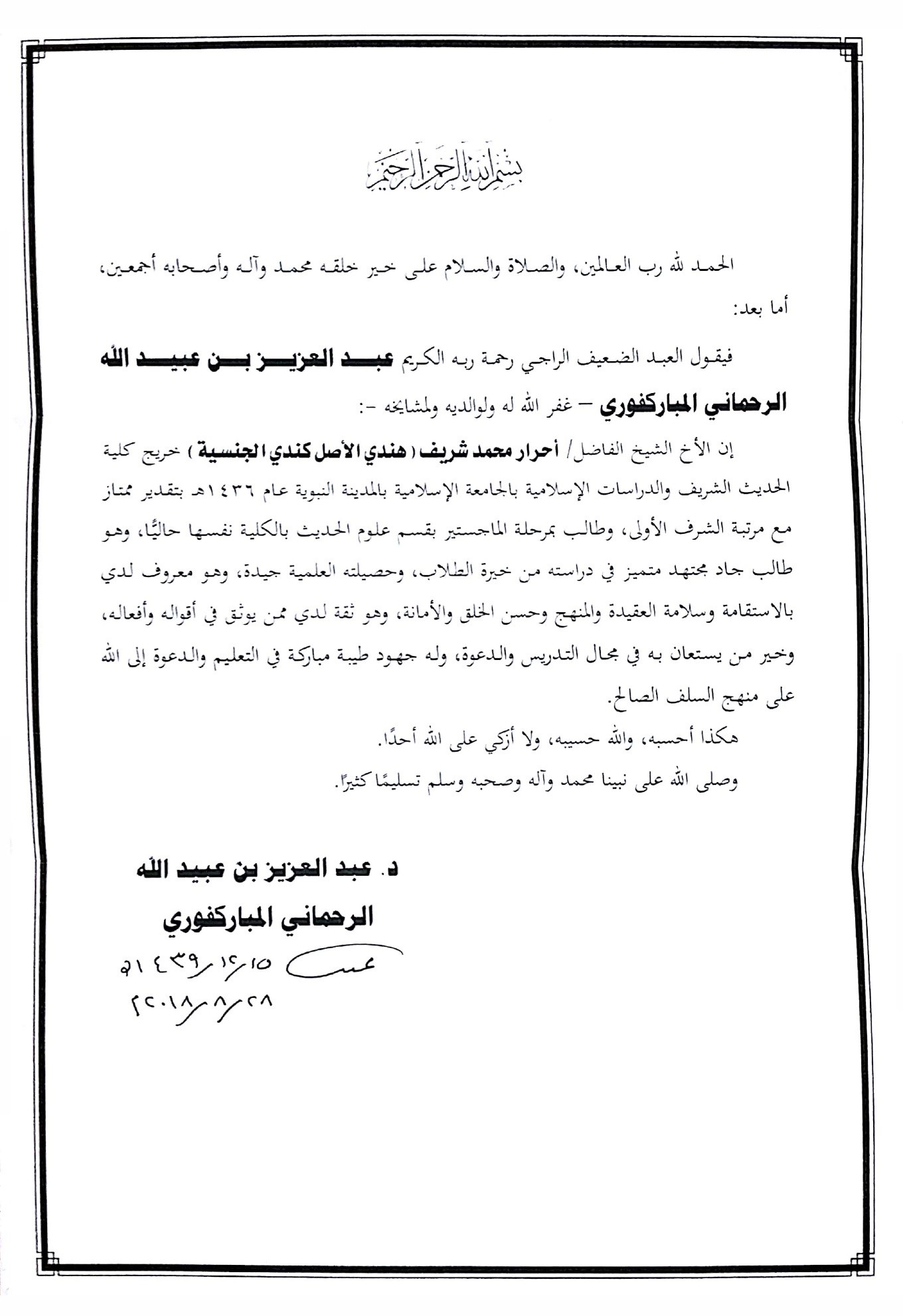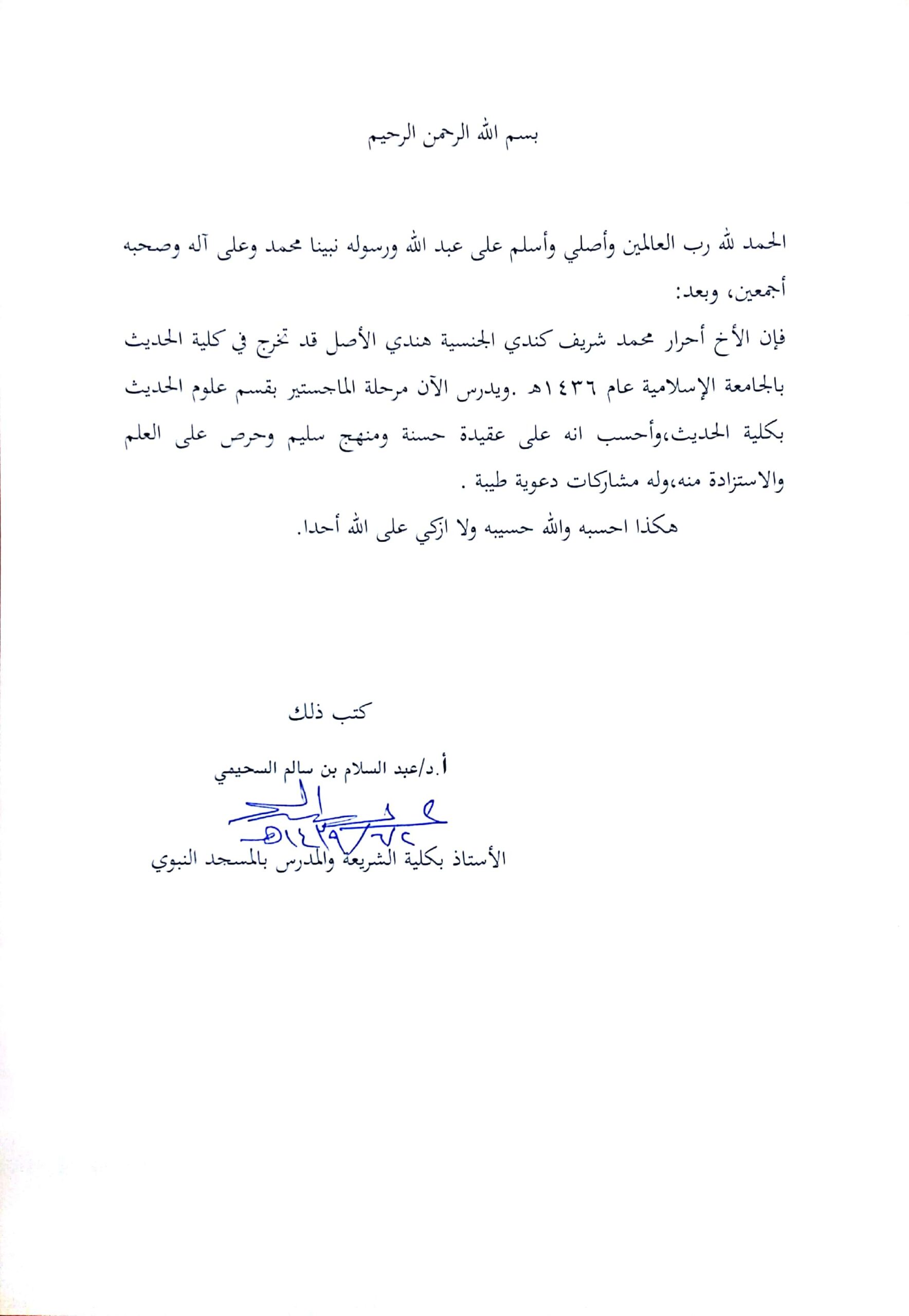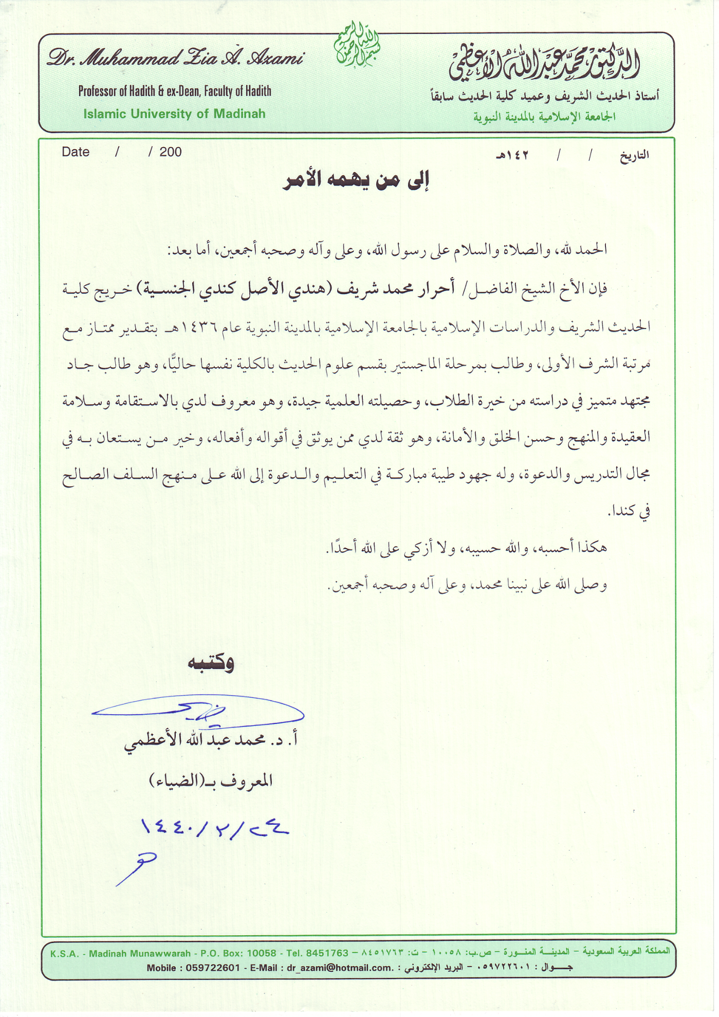 – Professor, College of Hadith and Islamic Studies, Islamic University of Madinah (Previously)