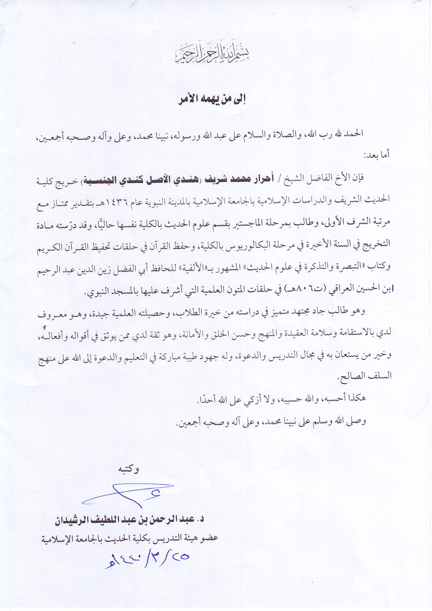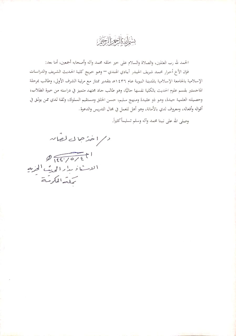 – Assistant Professor, Department of Hadith Sciences, College of Hadith and Islamic Studies, Islamic University of Madinah