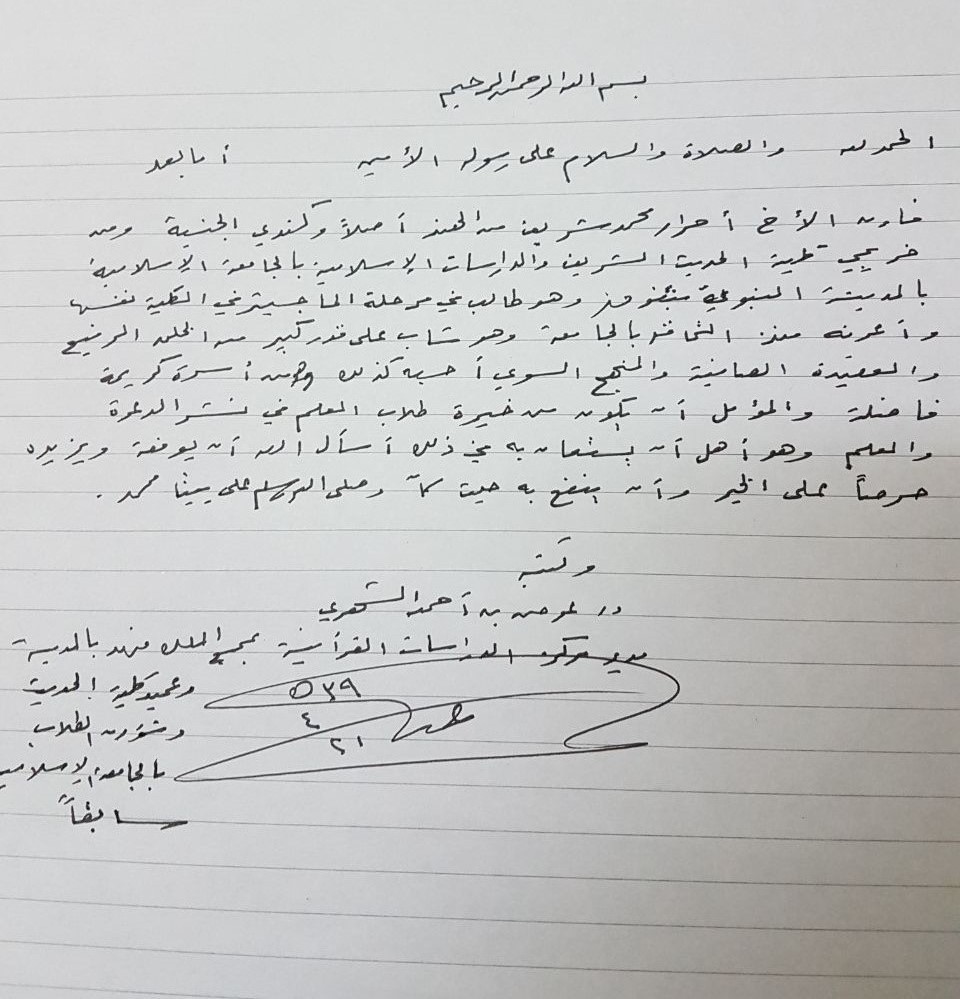 – Head of the Department of Hadith Sciences, College of Hadith and Islamic Studies, Islamic University of Madinah (Previously)